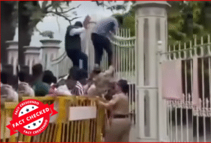 সম্প্রতি সামাজিক মাধ্যম ফেসবুকে একটি ভিডিও যেখানে দেখা যাচ্ছে বড় গেট বিশিষ্ট এক ভবনের সামনে রয়েছে পুলিশের উপস্থিতি এবং ব্যারিকেড দিয়ে আটকে রাখা হয়েছে বিক্ষভকারীদের। তার মাঝেই এক বিক্ষোভকারী ব্যারিকেড উলঙ্ঘন করে গেটে চড়াও হয় এবং তার পরে পরেই বিক্ষোভকারীরা ব্যারিকেড ভেঙ্গে ফেলে গেটের দিকে ধাওয়া করে। ভিডিওটি শেয়ার করে দাবি করা হচ্ছে যে, এটি […]